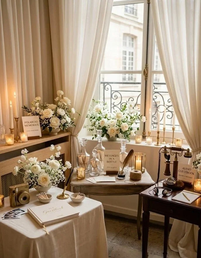 The Production Secret: Presentation is everything. Don't just leave the camera on a table. Frame it with candlelight, provide a dedicated "Photo Helper" if your budget allows, and use high-quality washi tape for a curated look.