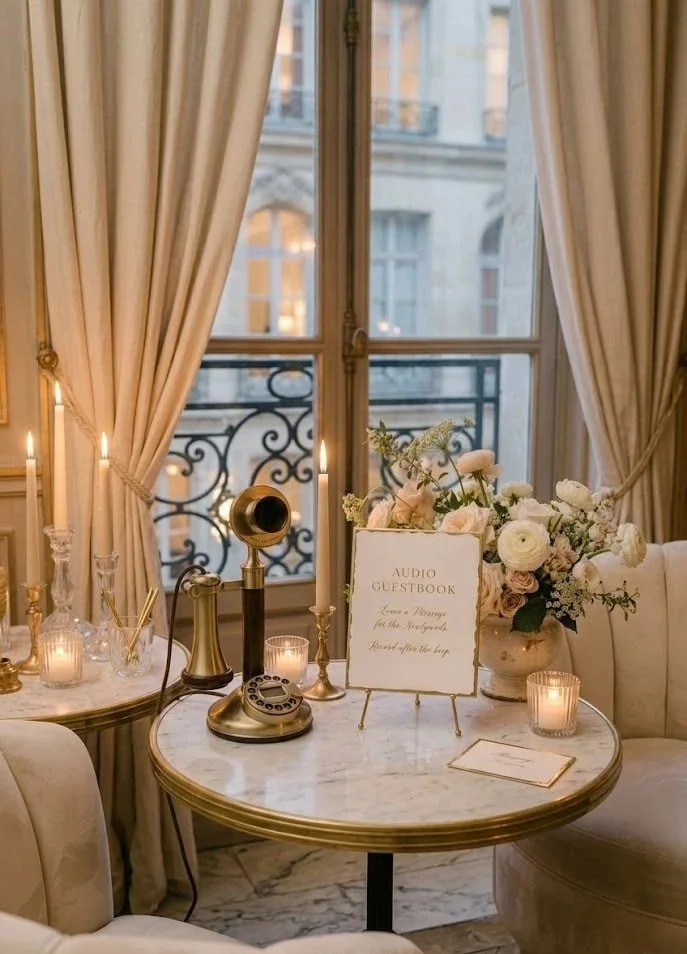 The Activity: Provide a dedicated "Recording Lounge." Guests record a short voice memo on a stylish device (or even a dedicated phone hidden inside a vintage rotary casing).